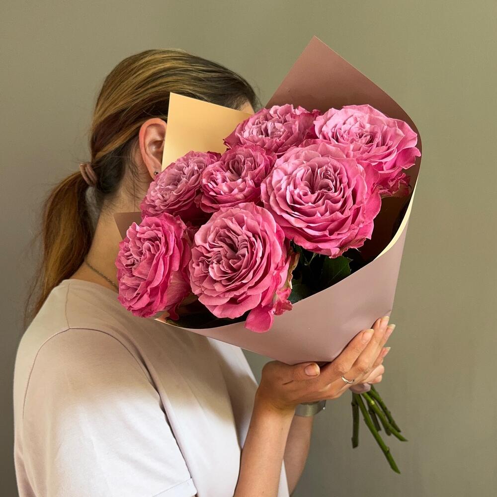 Прекрасный букет из 7 штук пионовидных роз, упакованных в нежную корейскую бумагу. Этот букет будет отличным подарком для любого праздника или повода, олицетворяя нежность и красоту цветов. Каждая роза пионовидная символизирует любовь, уважение и восхищение, делая этот букет еще более значимым для получателя.