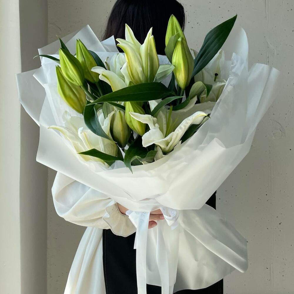 Букет из крупных лилий в дизайнерском оформлении