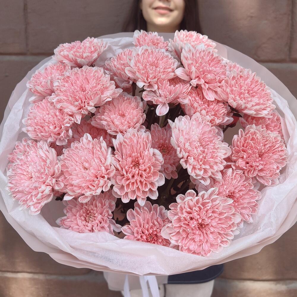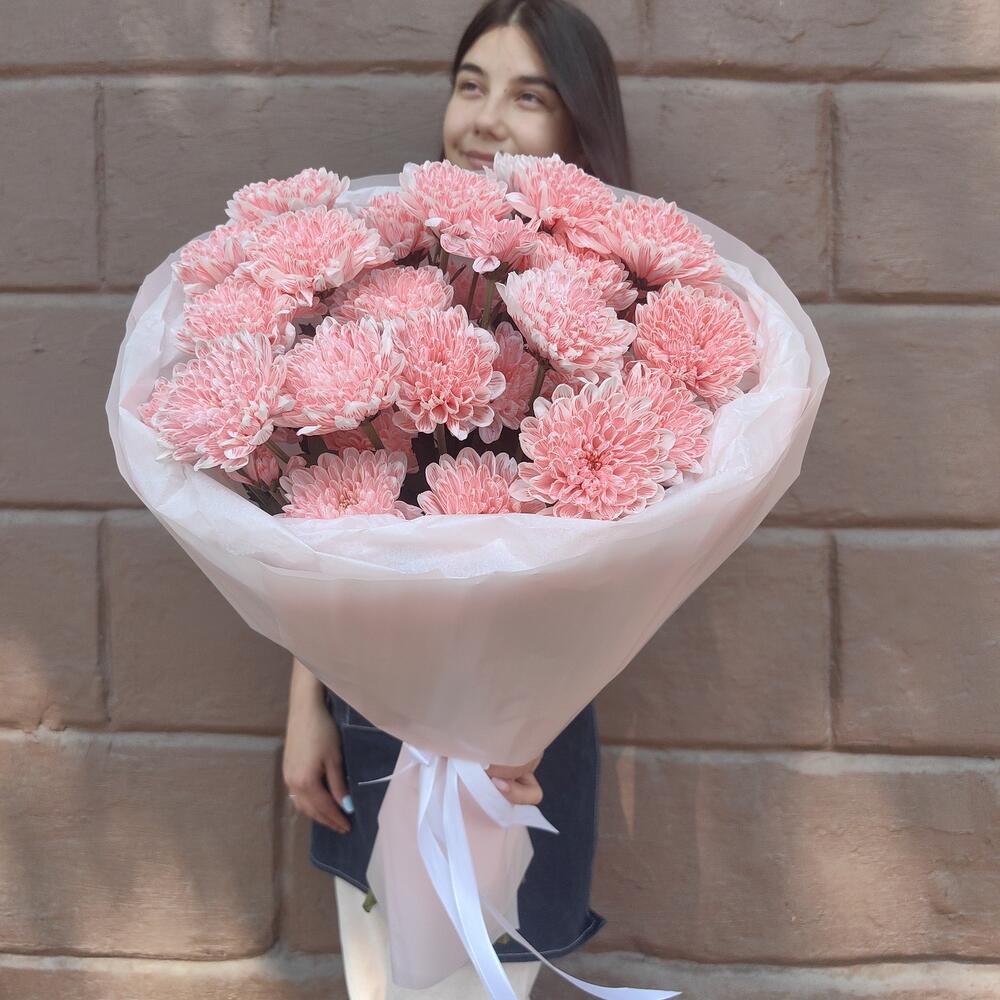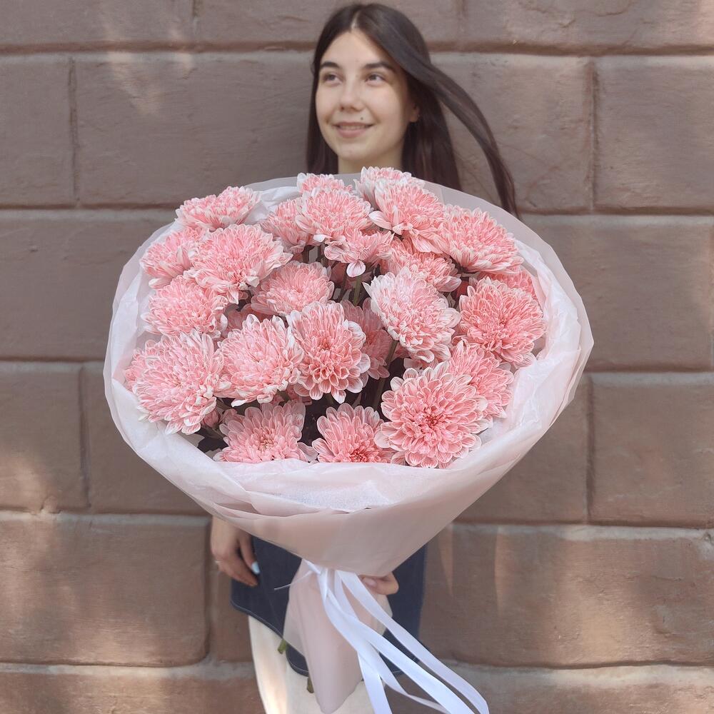 "Поцелуй ангела"- пудрово-нежный букет из пышных хризантем